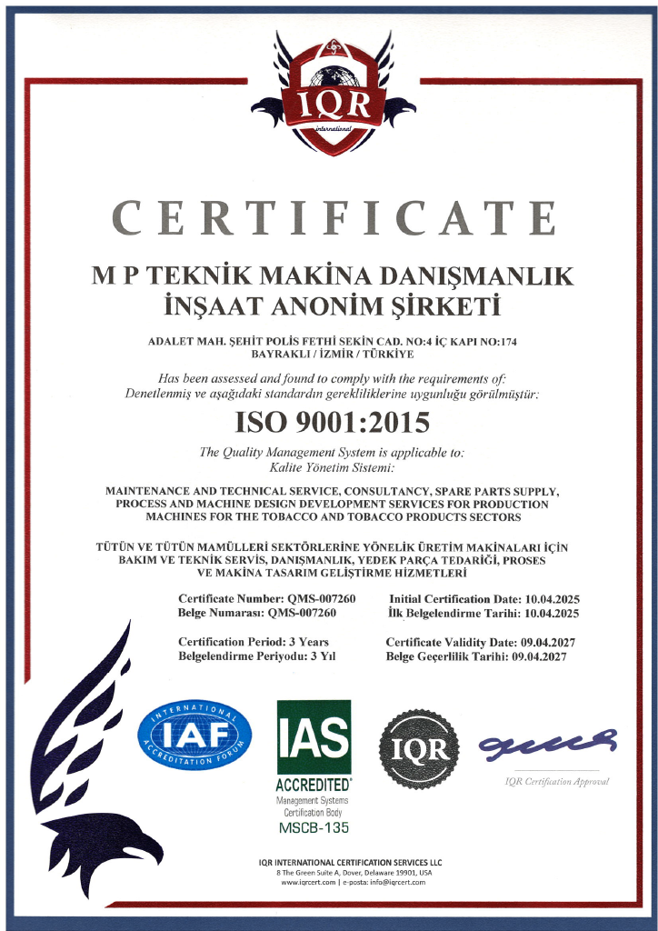 MP Technic is a corporate company providing production support, technical service, spare parts and innovative solutions globally for tabacco and cigarette industry.